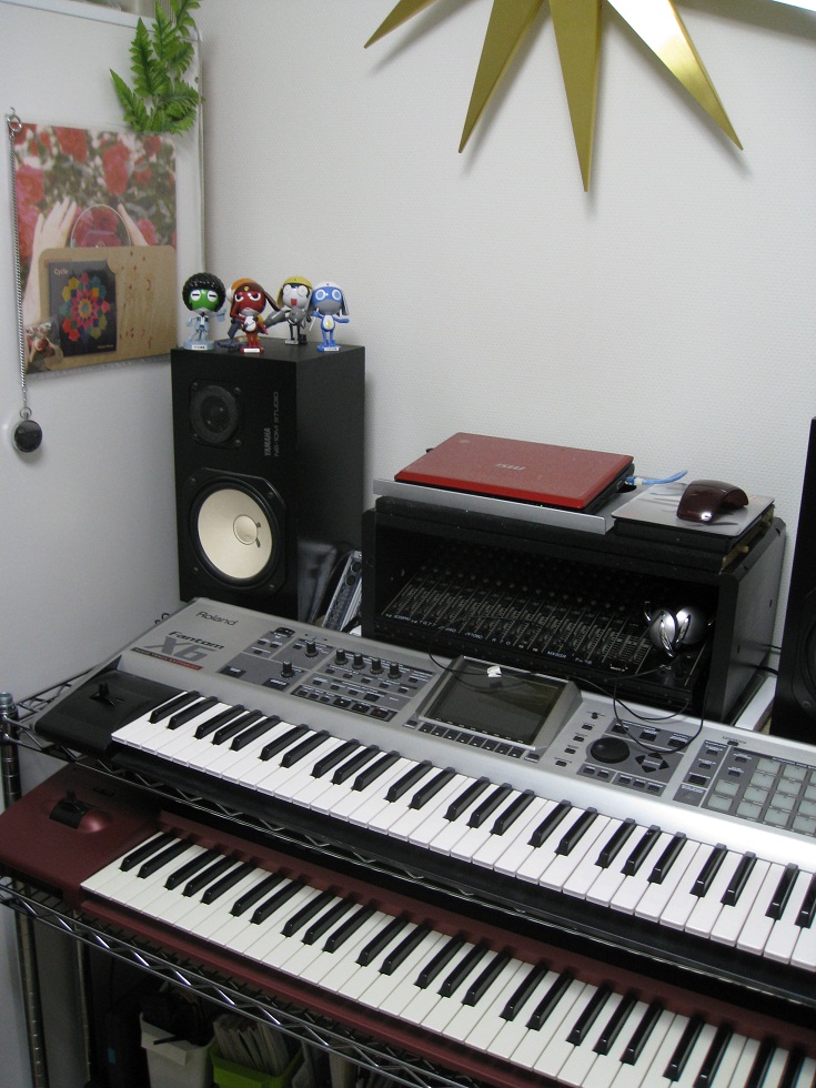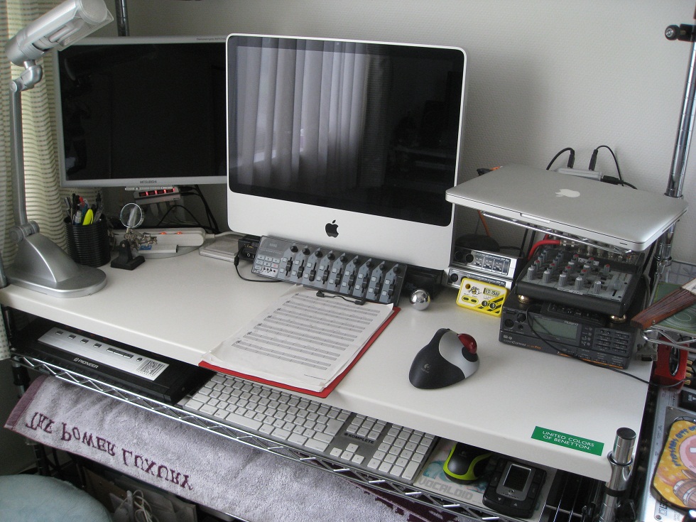 配線に時間がかかってしまい 完璧には終わらなかったので、、、 一部の箇所だけ今日はUP TVが置いてあった場所。 <Before> <After> 2段目のシンセにはスライド棚を採用。 よって収納できる。 押入れにしまってあったミキサーを使用する日がまた来るとは。。。 かれこれ14年位前に購入した品。 懐かしい。 確かソフマップで特価品で購入したはず。 明日は他の箇所をUP予定。